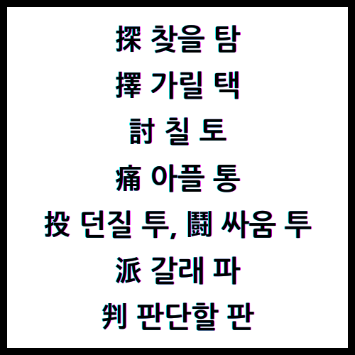 #한자 #한자8급 #한자7급 #한자6급 #한자5급 #한자4급2 #한자4급II #한자4급 #한자3급II #한자3급 #한자3급2 #한자2급 #한자1급 #특급한자 #한자특급 #8급한자 #7급한자 #6급한자 #5급한자 #4급II한자 #4급2한자 #4급한자 #3급II한자 #3급2한자 #3급한자 #2급한자 #1급한자 #한자급수 #급수한자 #한자수준 #한자글자수 #한자시험 #배정한자 #한자사전 #한자찾기 #한자검색 #한자능력검정시험 #한자어문회 #어문회 #어문회한자 #어문회특급한자 #진흥회 #진흥회한자 #진흥회특급한자 #한자진흥회 #한자진흥회기출문제 #한자어문회기출문제 #한자어문회배정한자 #어문회배정한자 #한자진흥회배정한자 #진흥회배정한자 #진흥회한자기출문제 #어문회한자기출문제 #探찾을탐 #擇가릴택 #討칠토 #痛아플통 #投던질투 #鬪싸움투 #派갈래파 #判판단할판 #평판 #오판 #담판 #결판 #판정 #판별 #판독 #판단 #판결 #파병 #파생 #급파 #당파 #특파 #학파 #투변 #투쟁 #투지 #건투 #격투 #사투 #전투 #한강투석 #이란투석 #투하 #투표 #투자 #투여 #투약 #투숙 #투수 #투구 #비통 #복통 #두통 #고통 #통탄 #통쾌 #통분 #통감 #검토 #토적 #토의 #토벌 #토론 #택일 #택지 #선택 #채택 #탐지 #탐정 #탐사 #탐방 #탐문 #탐구